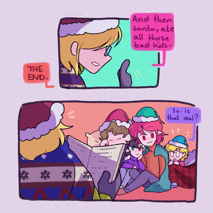 Merry Christmas from this silly little family to y'all! :D [ 1/2 ] #technobladefanart #wilbursootfanart #alliumduo #alliumduofanart #quackityfanart #tommyinnitfanart #tntduofanart #crimeboysfanart