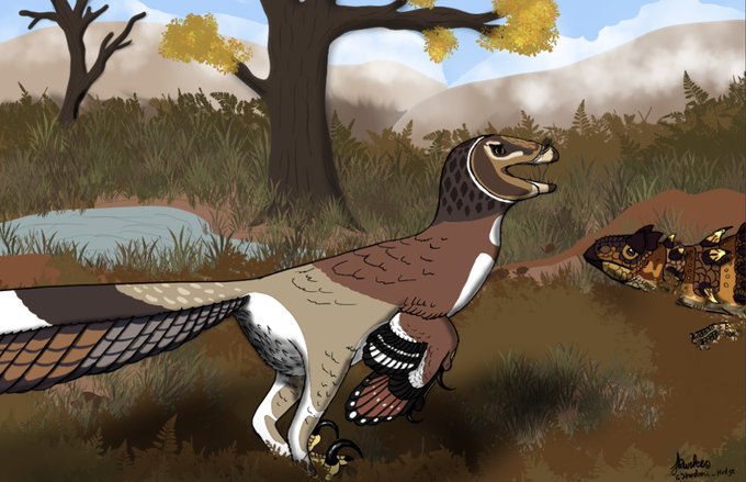 Orkoraptor burkei captures a small Stegouros ankylosaur, in the ancient forests of Patagonia, South America. sciencedirect.com/science/articl… researchgate.net/publication/35… #orkoraptor #stegouros #megaraptor #ankylosaur #patagonia #paleoart #paleontology #dinosaur #zbrush #blender