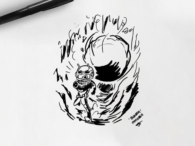 Inked up a MODOK sketch while sitting at my #MinnesotaCon table. Sketched in @Procreate➡️Printed to Bristol➡️Inked with Sakura brush pens, Microns, and white gel pens. #procreateartist #antmanandthewaspquantumania #modok #antman #mcu