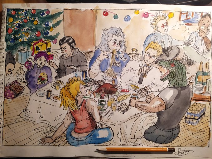 Merry Christmas and Happy New Year! #dorohedoro #hayashidaq #anime #art #shinoi #nikaiman #Xmas #MerryChristmas #aquarel #watercolor #ink #fanart