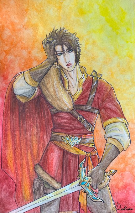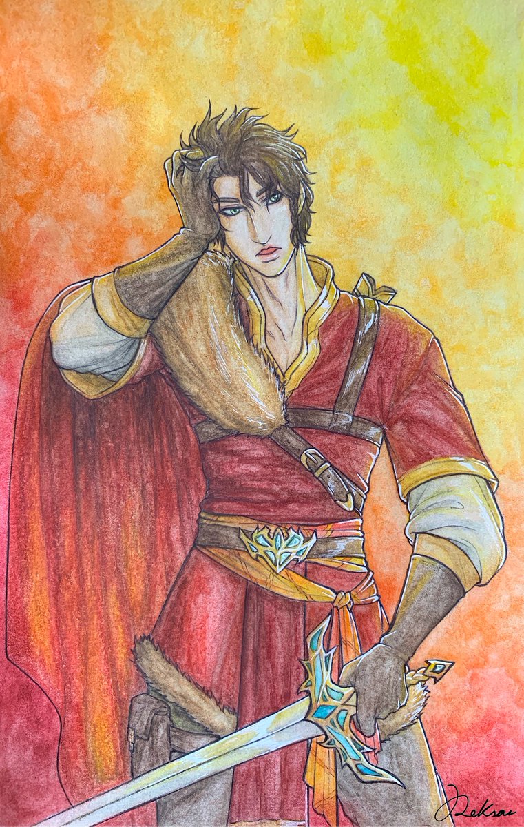 “Warm tones” My albums are full of OCs, so be ready to see many, many characters belonging to me and my gf’s stories on my page- 👀 For today, here’s Aran~🗡🌅 #inktober2020 #OC #Aran #warmtones #sword #fur
