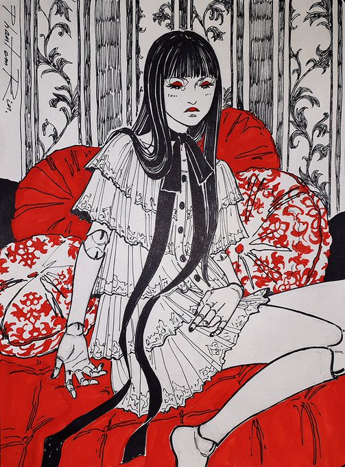 Inktober - 21 - Artificial And, as usual, you can look up the step-by-step process of this piece (and others) on my #Patreon page (PhantomRin9) 😉 #Inktober #artificial #doll #bjd #girl #red #original #art #illustration #traditional #PhantomRin