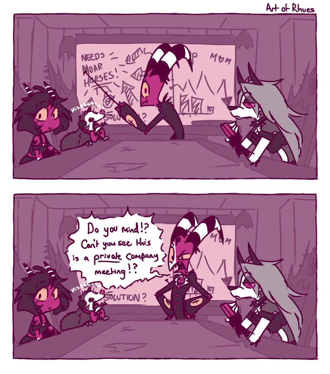 Hush Moxxie...The grownups are negotiating... - If you'd like to dub...the individual panels are available on my tumblr : rhues.tumblr.com/post/657611629… #HelluvaBossFanart #HelluvaBossStriker #HelluvaBossBlitzo #HelluvaBossMillie #HelluvaBossMoxxie #artofrhues