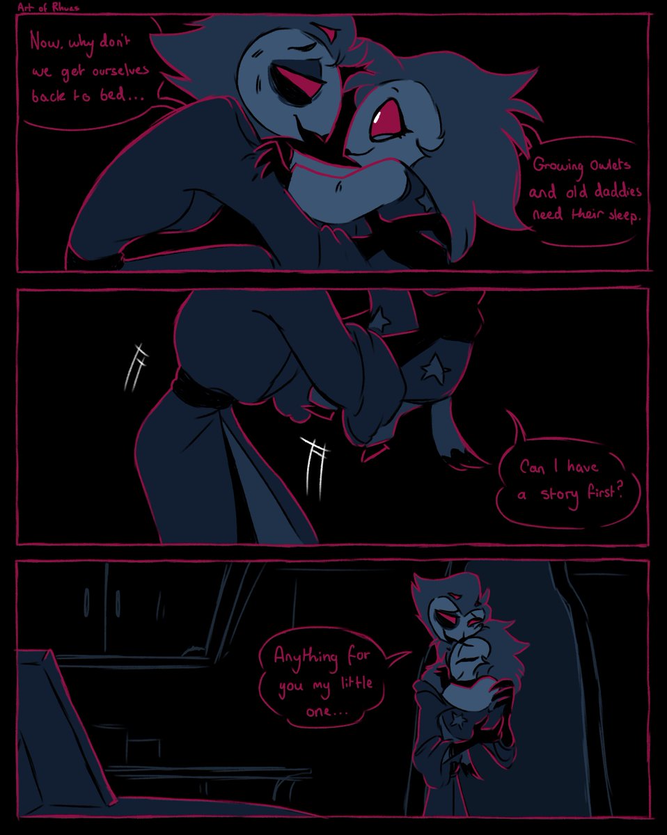 I kept expecting Blitz to suddenly burst through the window holding a bunch of lollies and balloons and that's why he didn’t reply because he was hauling himself up the side of the hospital... #HelluvaBossStolas #HelluvaBossBlitzo #HelluvaBossSpoilers #artofrhues