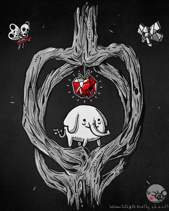 Adventure Time-themed Inktober day #13: Kind. 13/31 daily drawings done! Previous day 12: Forget, upcoming day 14: Empty. #inktober #inktober2022 #kind #adventuretime #at #jake #treetrunks #drawing #apple #tattoo #illustration #skart #galleryofskart