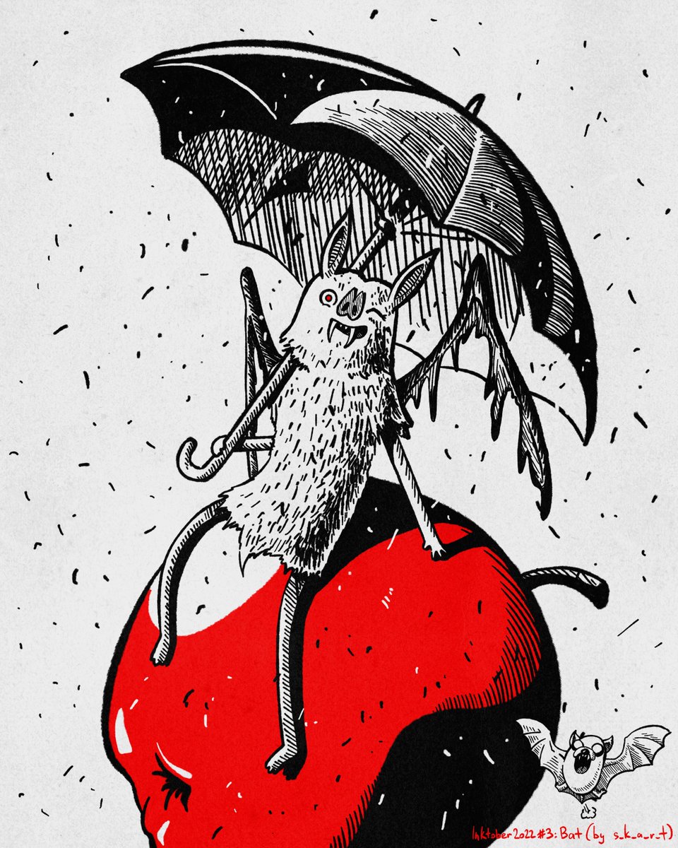 Adventure Time-themed Inktober day #3: Bat. 3/31 done! Upcoming day 4: Scallop. #inktober #inktober2022 #bat #adventuretime #at #marceline #jake #drawing #illustration #skart #galleryofskart