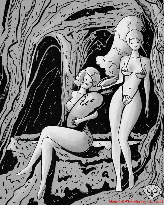 Adventure Time-themed Inktober day #4: Scallop. 4/31 done (ugh it's hard)! Upcoming day 5: Flame. #inktober #inktober2022 #scallop #adventuretime #at #nymph #jake #drawing #illustration #skart #galleryofskart