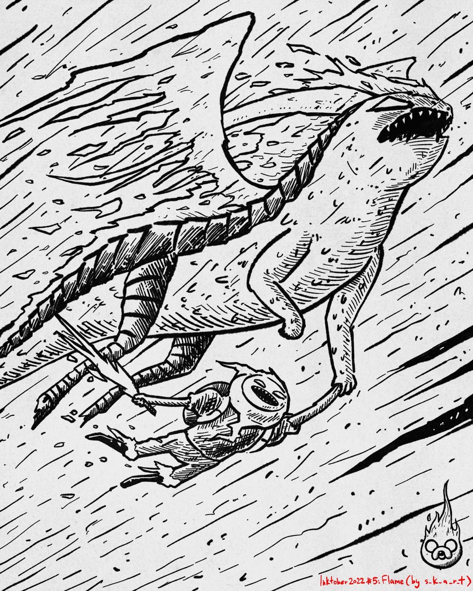 Adventure Time-themed Inktober day #5: Flame. 5/31 done! Upcoming day 6: Bouquet. #inktober #inktober2022 #flame #adventuretime #at #flameprincess #elemental #fire #jake #drawing #illustration #skart #galleryofskart
