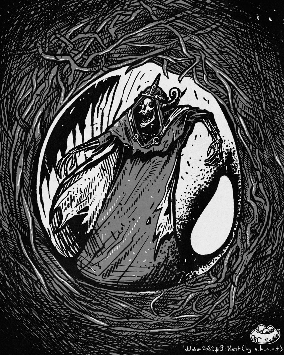 Adventure Time-themed Inktober day #9: Nest. 9/31 daily drawings done! Previous day 8: Match, upcoming day 10: Crabby. #inktober #inktober2022 #nest #adventuretime #at #lich #jake #demon #death #drawing #illustration #skart #galleryofskart
