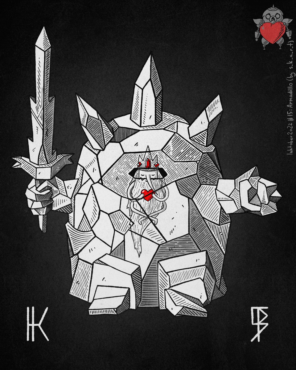 Adventure Time-themed Inktober day #15: Armadillo. 15/31 done! Prev day 14: Empty, next day 16: Fowl. Which one do you like more, with snow or without? Please let me know❄️ #inktober #inktober2022 #armadillo #adventuretime #at #jake #iceking #illustration #skart #galleryofskart