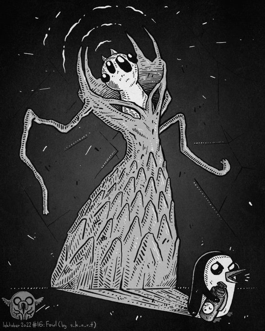 Adventure Time-themed Inktober day #16: Fowl. 16/31 daily drawings done! Previous day 15: Armadillo (it's was pretty underrated IMO), upcoming day 17: Salty. #inktober #inktober2022 #fowl #adventuretime #at #jake #gunter #orgalorg #drawing #illustration #skart #galleryofskart