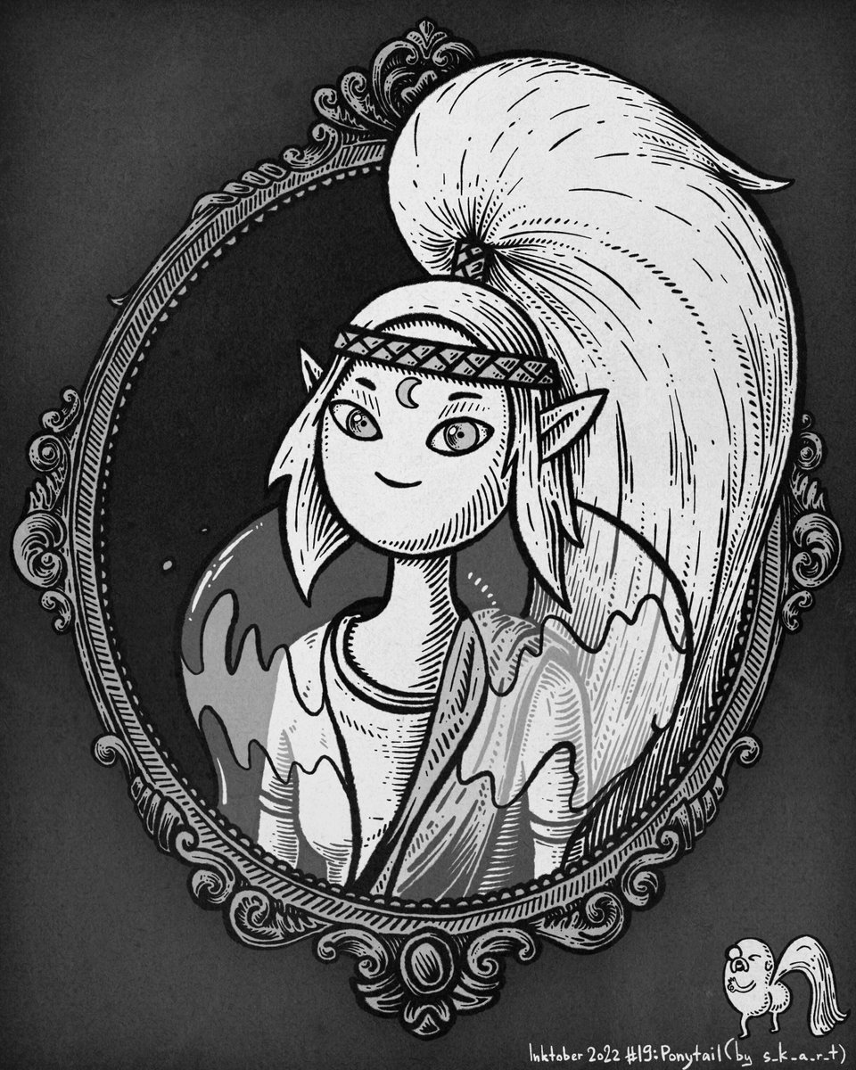 Adventure Time-themed Inktober day #19: Ponytail. 19/31 daily drawings done! Previous day 18: Scrape, upcoming day 20: Bluff. #inktober #inktober2022 #ponytail #adventuretime #at #jake #canyon #tattoo #portrait #vintage #etching #art #drawing #illustration #skart #galleryofskart