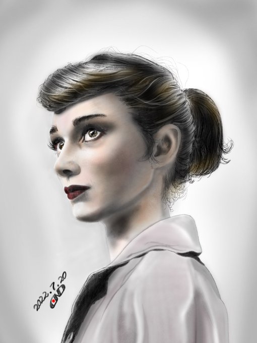 オードリー・ヘプバーン さんを描いてみました。 #イラスト #イラスト練習中 #イラスト好きさんと繋がりたい #絵描きさんと繋がりたい #似顔絵 #オードリーヘプバーン #AudreyHepburn #art #painting #procreate