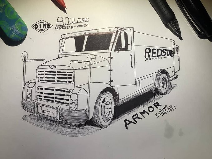 #inktober2020armor yet another car related #inktober A DIRE Boulder Redstar-Armory if your interested. #art #artist #automotiveart #ink #inkart #inktober2020 #inktober2020day14 #inktoberday14 #armor