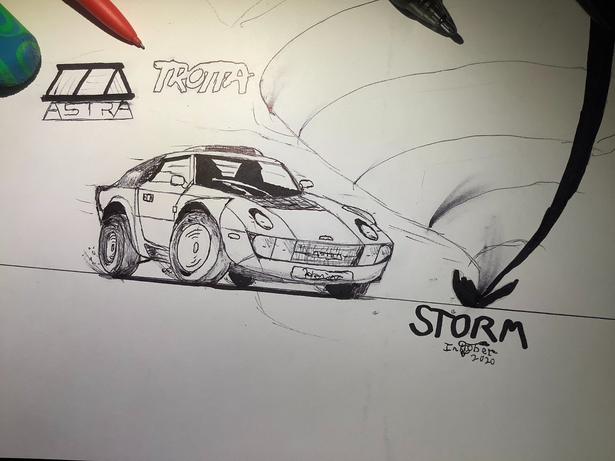 #inktober2020storm Trying to outrun a big storm huh? good luck. Still my favorite original car #art #artist #automotiveart #carart #originalcar #ink #inkart #inktober #inktober2020 #inktober2020day17
