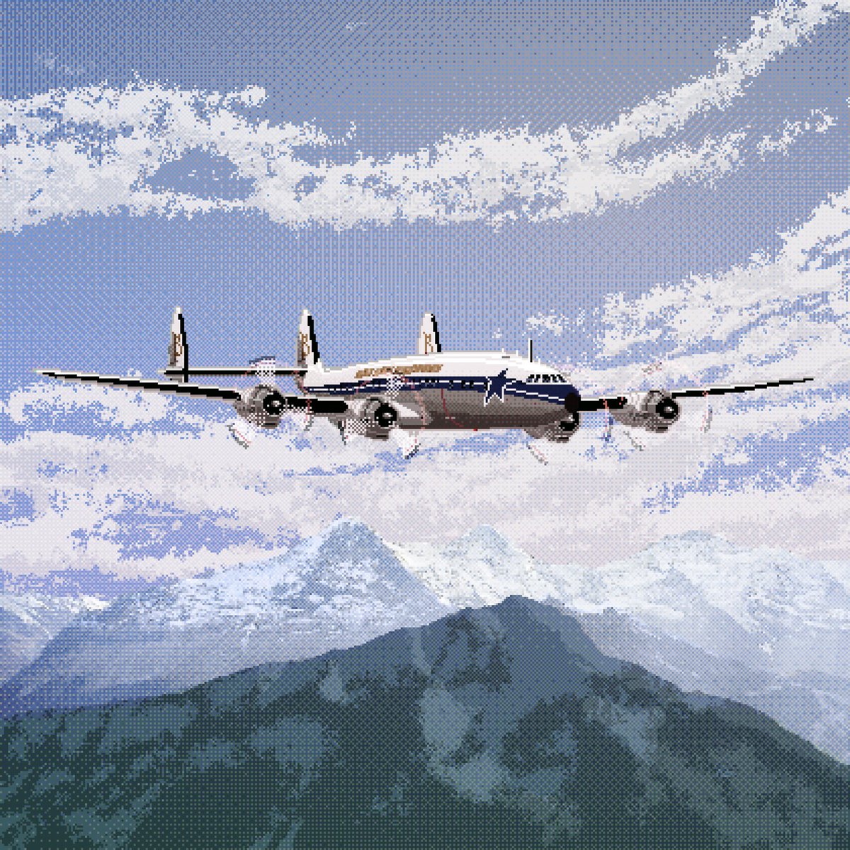Pixelplanes – Lockheed Super Constellation L-1049 Farewell Star of Switzerland #Lockheed #art #avgeek #avnerd #pixelartist #pixel #aviation #aviationdaily #aviationlife #classic #classicaviation #airliner #asprite #instaart #instaartist #digitalartist #8bit #16bit #ドット絵