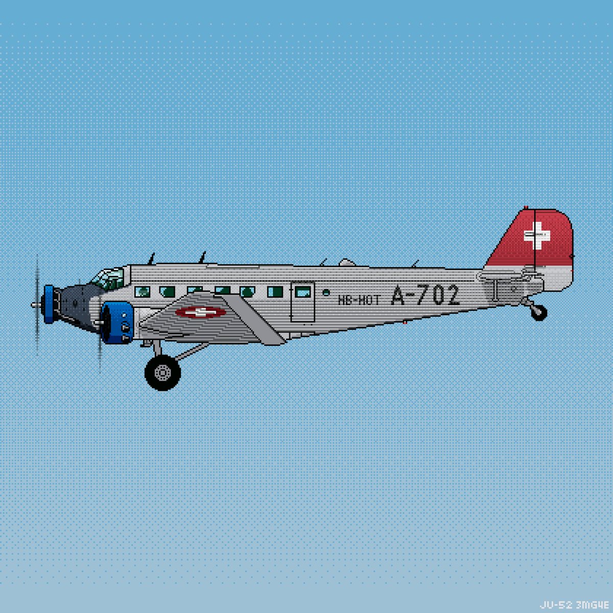 WW2 Pixelplanes – Ju-52 «Tante Ju» #Junkers #Ju52 #ClassicAir #JuAir #plane #airplane #pixelart #transportaircraft #pixel #art #avgeek #aviationgeek #avnerd #aviation #aviation4u #flyinglegends #aviationdaily #aviationlife #ww2 #ww2history #digitalartist #8bit #16bit #ドット絵