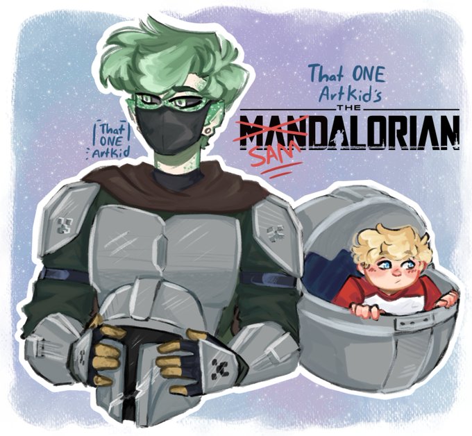 Get it? Cuz- It's the.. SAM-dalorian and the child :))) [#Awesamdude #AwesamdudeFanart #CAwesamdude #Tommy #Tommyinnit #TommyinnitFanart]