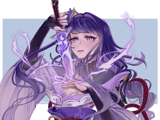 Even though I still haven’t even actually tried playing #GenshinImpact yet, I absolutely adored #Baal’s design after seeing her for the first time; so I wanted to draw her 😌🙏💙🗡🌩⚡️💜☯️🌸 #genshinimpactfanart #fanart #Baalfanart #raidenshogun #raidenshogunfanart