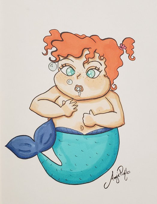 Day 3 of #mermay2021 I drew a baby boy mermaid and I think he came out so cute! #art #mermay #babymermaid #baby #mermaid #markerart #micron #traditionalart