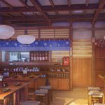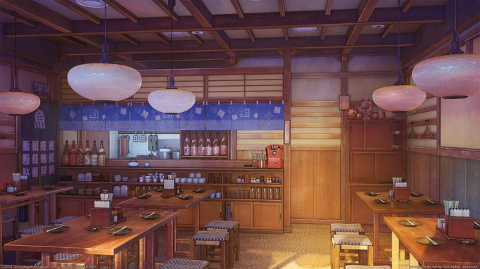 Japan restaurant interior. Backgrounds for "Love, Money, Rock’n’Roll" visual novel game. This image done in collaboration with my friend and colleague Vvcephei #background #digitalart #painting
