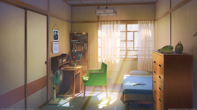 Small room in Japan 80's. Backgrounds for "Love, Money, Rock’n’Roll" visual novel game. This image done in collaboration with my friend and colleague Vvcephei #background #digitalart #painting