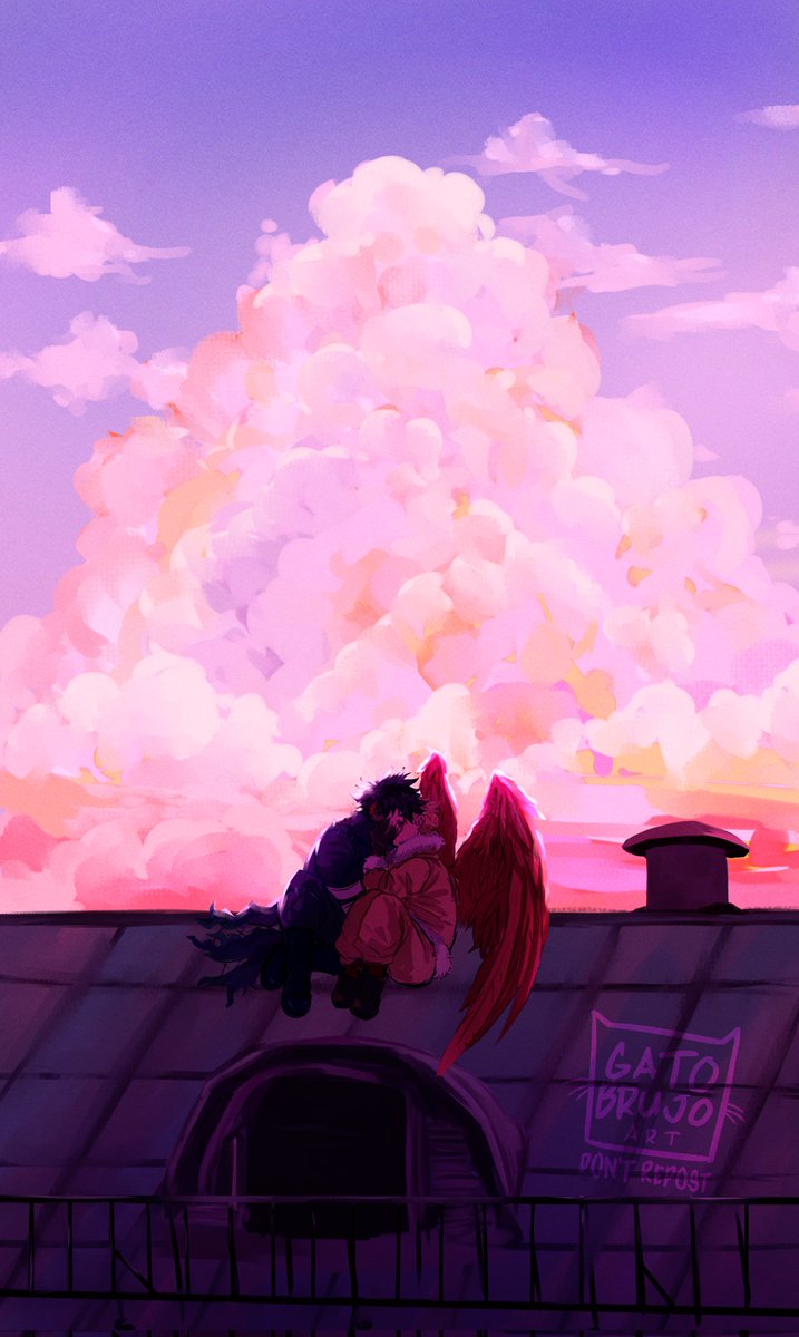 "Let's keep kissing on this wonderful dream where it's you and me" #dabihawks #hotwings #aesthetic #background #landscapepainting #landscape #landscapes #CLIPSTUDIOPAINT #dabi #hawks #TouyaTodoroki #fanart #lofi #MHA #BNHA . I forgot how fun was drawing clouds
