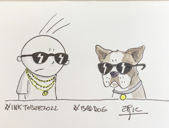 Bon vendredi Twitter ! #inktober #inktober2022 #baddog #illustration #doglover #bostonterrier #watercolor #badboy