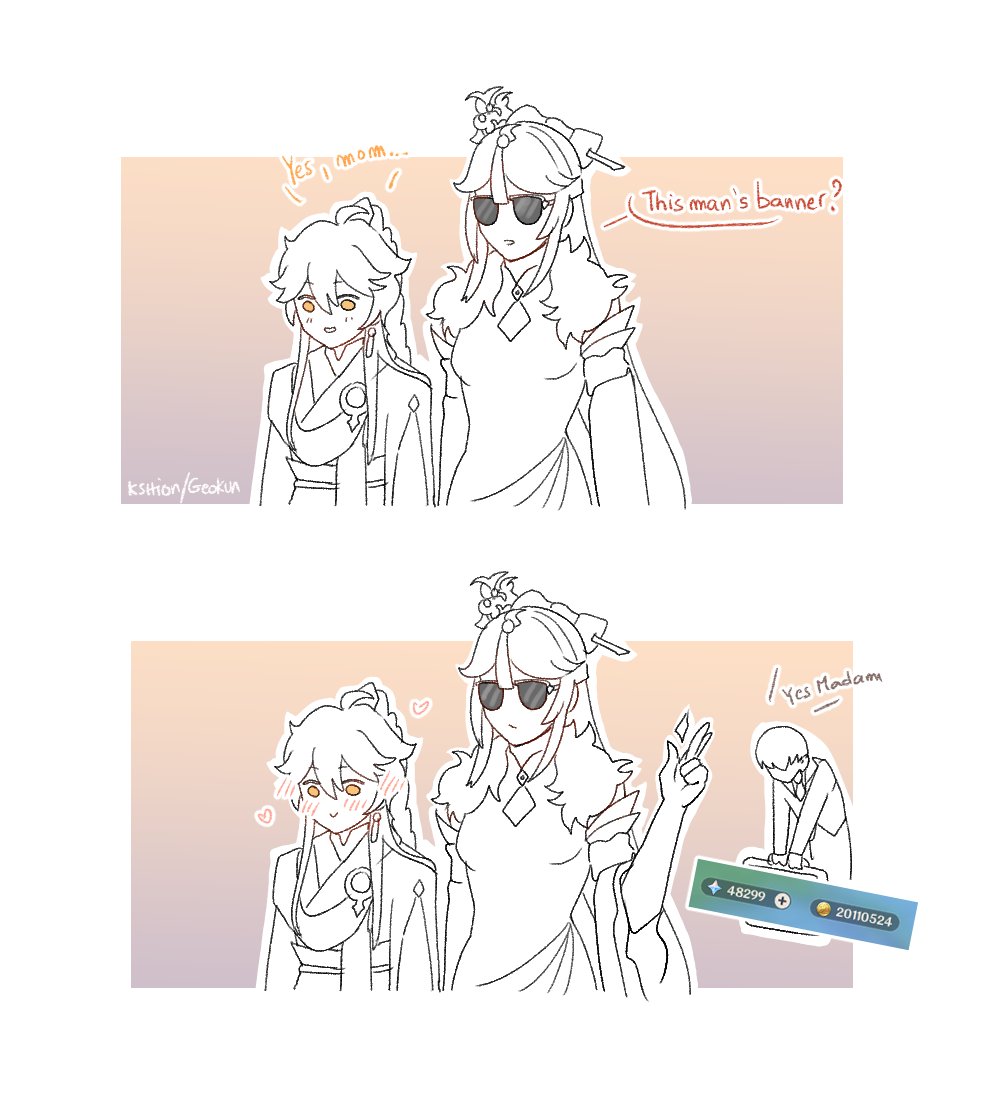 🍐// Bundle repost: Today is Mother's day for us (´∀`)♡ Happy day, Moms! Thank you for being here with me since the first pull! 💛✨ #Ningguang #Beidou #Aether #Lumine #beigguang
