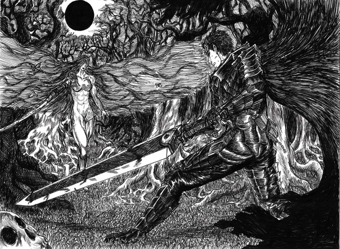 Beast of Darkness another berserk artwork i made 3 years ago :) started as a 30 min sketch and gave it some detailing later on #Berserk #ArtistOnTwitter #berserkfanart #berserkart