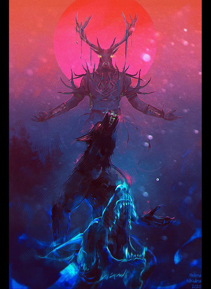 Bloodmoon.🌑🔴 Fanart to the dlc of the same name for Morrowind. #artistsontwitter #Bethesda #morrowind