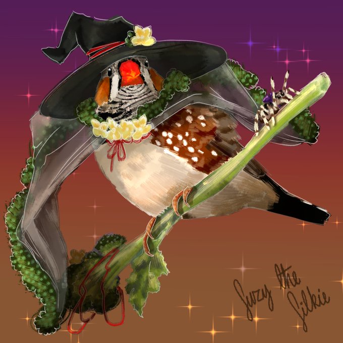 Borrowed Mr. Peep for #birdtober2022 A zebrafinch 🥦BROCCOLI WITCH🥦 #Drawtober2022 #inktober2022