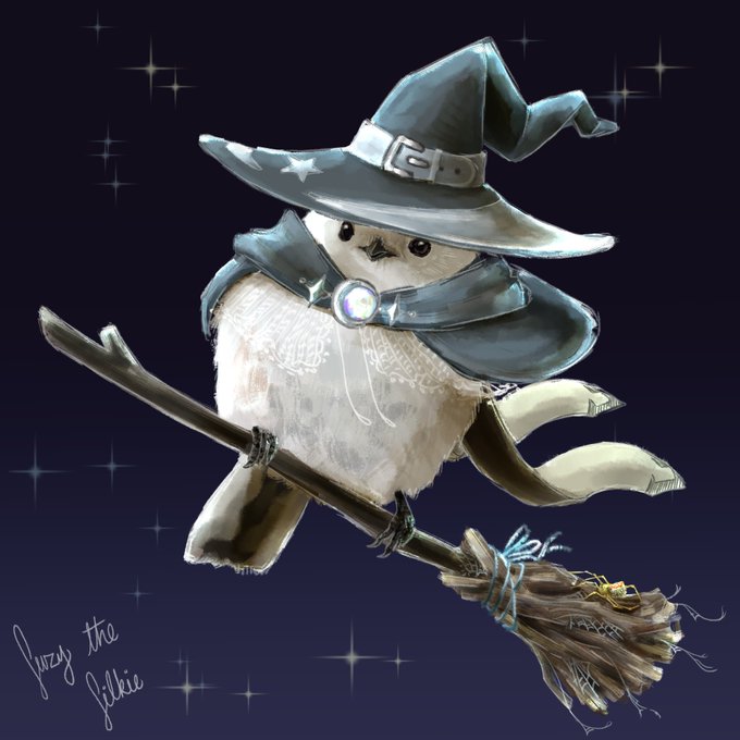 Back on track for #birdtober2022 , this is Billiam Von Bumbershoot the good witch! She is looking up how to make more millet with her spider butler close at hand. #inktober2022 #Drawtober2022