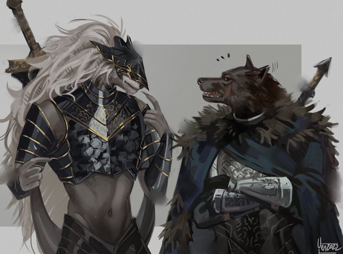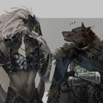 Nomadic Merchant: Slow-selling goods. Just eat, no waste. #EldenRing #EldenRingFanart #rogier #blaidd #merchant