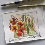 Peacock Flower~Caesalpinia pulcherrima~a brilliantly colored ornamental tropical shrub and the national flower of Barbados. It’s leaves,seeds,& pods contain toxic hydrogen cyanide. Not good if you have curious pets who like to nibble. ☠️🌿#bloomtober21 #watercolor #watercolour