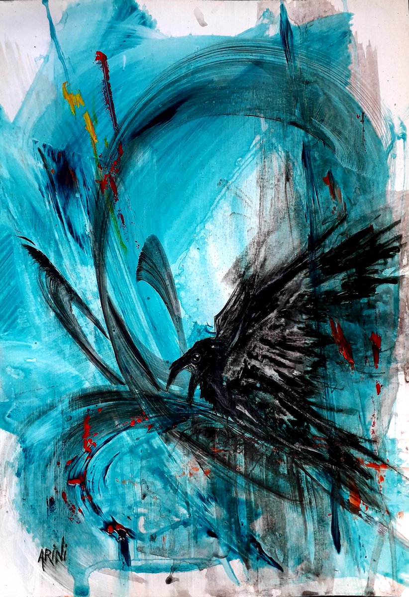 Raven-53 #acrylic on paper 32x24 cm...Available for sale 😊#abstract #abstractart #abstractpainting #abstractartist #raven #crow #blueart #ArtistOnTwitter #artist #painting #contemporaryartist