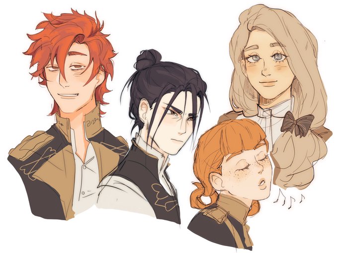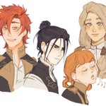 Little doodle of the three blue lion dorks and Ingrid with her OG hair. #FireEmblem #FireEmblemThreeHouses #ingrid #sylvain #felix #bluelions