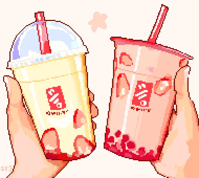 Boba tea! But it's pixelart #digitalart #digitalart #digitalpainting #Cute #Simple #pixelart #ドット絵 #Boba