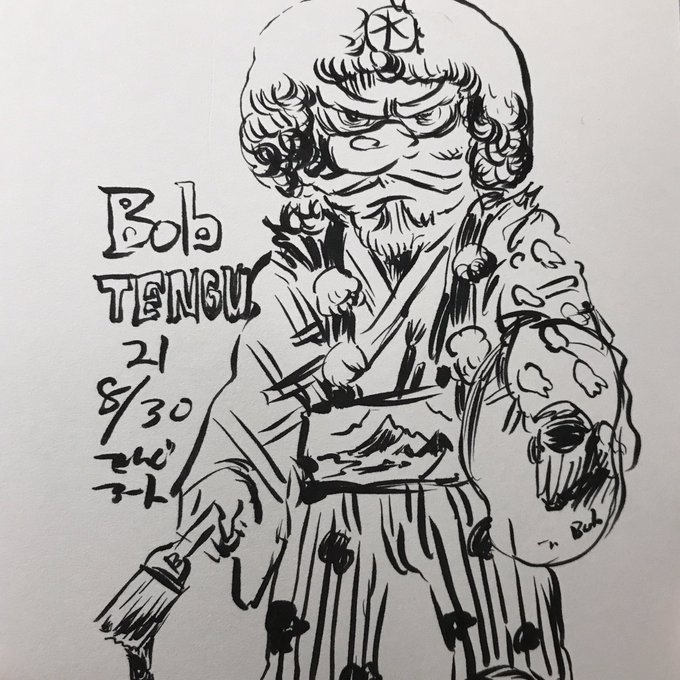 Woke up late again, work is killing me. New drawing tomorrow, I promise. For #inktober2021day6, I give you #BobRoss. #inktober2021
