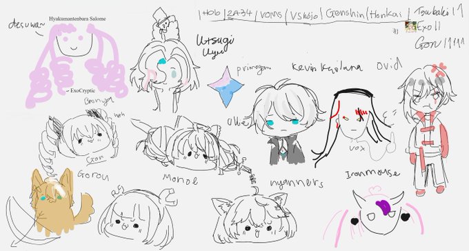 Me, @Gonn_000, @EXCRYTIC and some of our oshi (ᗒᗨᗕ) #サロメ百万展 #Uyu_Art #BronyaZaychik #KevinKaslana #Gorou #graveyART #Akurylic #Artchivist #Primogem #nyanart #ironmouseart #磁っとみて