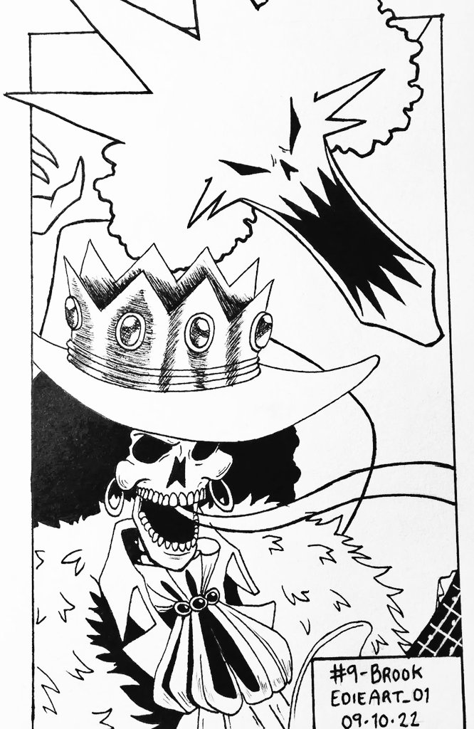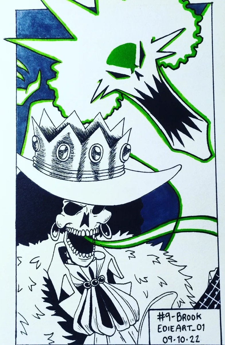 ARTOBER DÍA 9 #BROOK Otro personaje god "Soul King Brook" “Señorita....¿Sería tan amable de enseñarme sus bragas? Yo ho ho ho" #onepiece #anime #manga #artober2022 #inktober2022 #drawing #animedrawing #mangadrawing #halloween
