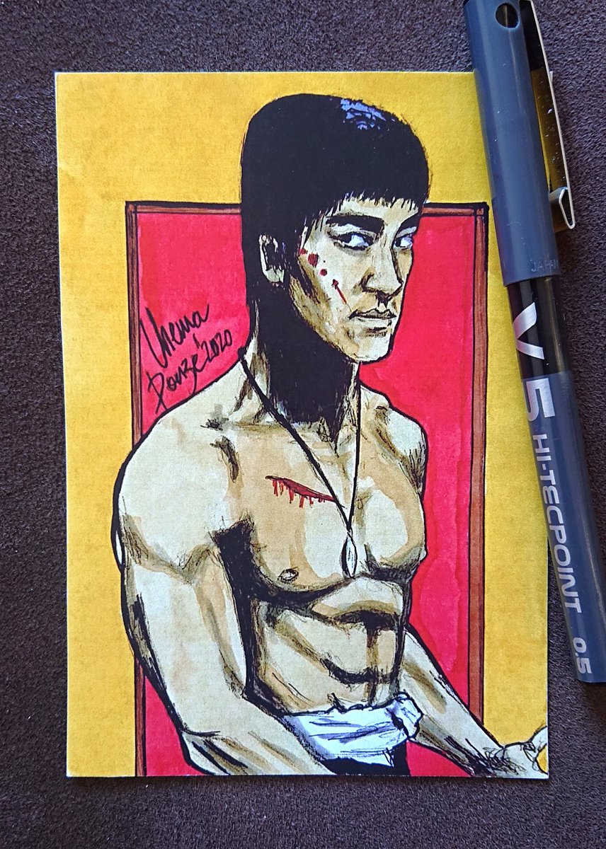 #今日は何の日 ? 今日は #ブルース・リー生誕祭 なのだ 筆先がボロボロで そろそろ寿命な筆ペンで #レシートラクガキ しました #落書向上委員会 #落書きギルド #アナログイラスト #絵の世界 #みんなで楽しむTwitter展覧会 #絵描きさんと繋がりたい #李小龍 #BruceLee