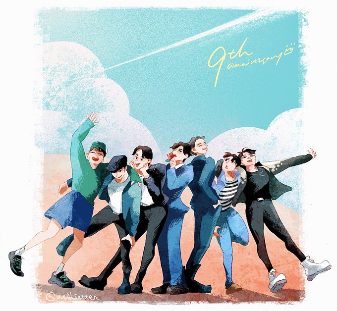 Happy 9th birthday! Thanks for all songs, words, performances and moments💜 #btsfanart #BTS9thAnniversary #YetToCome #BTS_Proof