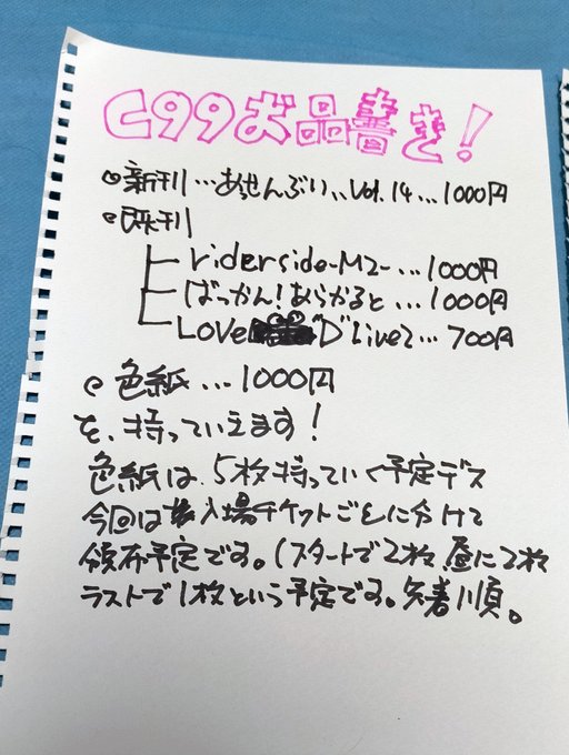 ❄️ #C99 お品書き❄️ ・新刊セット(本3冊とクリアファイル) ・等身大タペストリー 他、既刊を頒布します! 12/31 2日目【西ひ44a】「プロペラプロンプト」 当日はよろしくお願いいたします✨ メロン melonbooks.co.jp/circle/index.p… とら ec.toranoana.jp/tora_r/ec/cot/… ※セットは現在通販準備中です。 #C99A