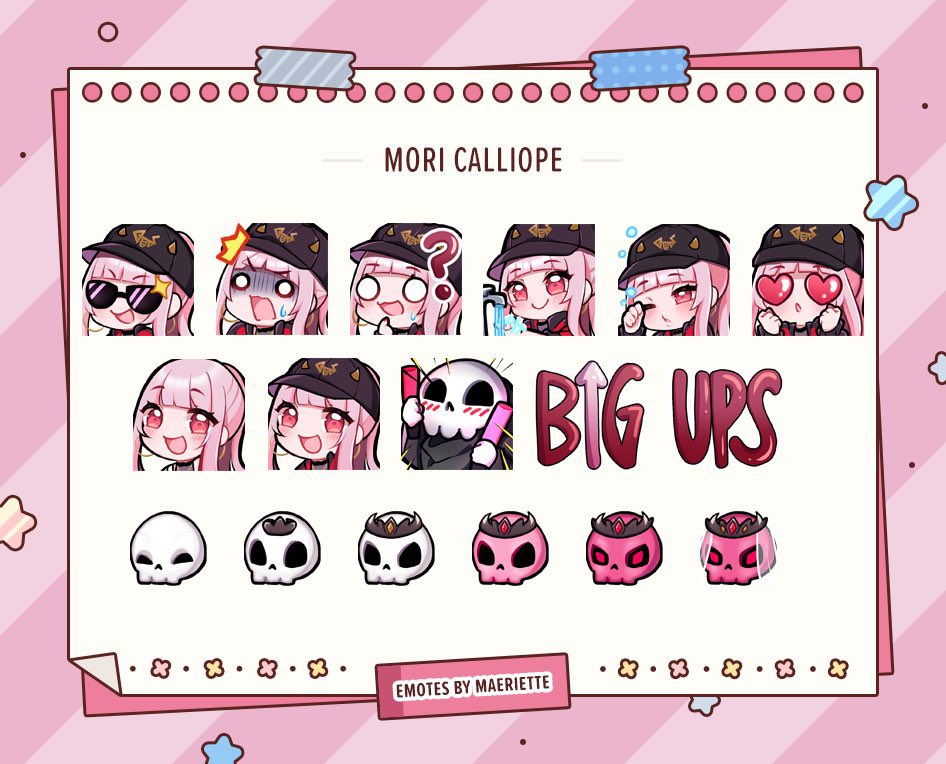 New Emotes for Calliope! ✨💀🎤 I had so much fun making her sub badges~ BIG UPS! #callillust #calliolive