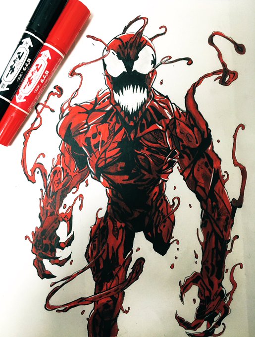 A4 Carnage on bristol board using Copic markers #Carnage #venom #Marvel #copic #copicmarkers #MarvelStudios #comics #art #artwork #drawing @WoodyHarrelson #artist #illustration #artistsontwitter #tomhardy #MCU