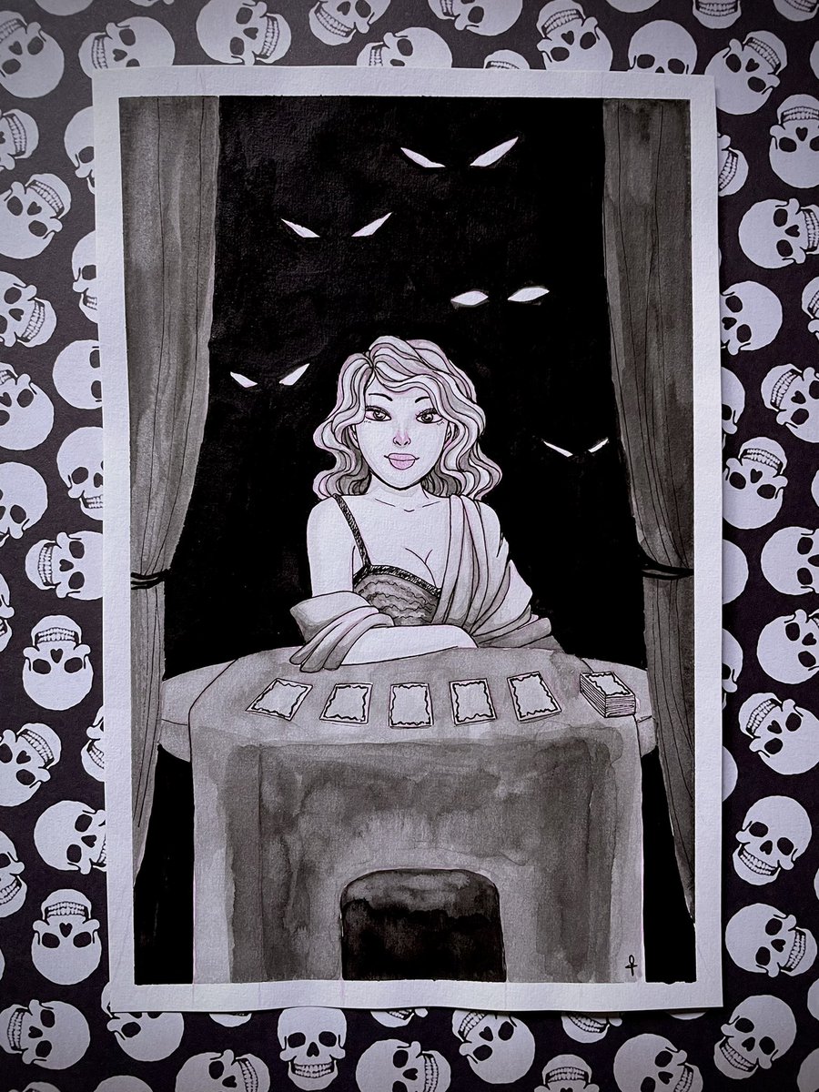 Inktober Day 15: 💀Fortune Teller💀 Worked this prompt in from @drawtober #tarotcards #illustration #carnival