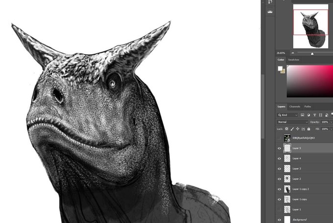 It bothers me how symmetrical and "perfect" some reconstructions of prehistoric animals are. Nature isn't allways like that. The horns of this #carnotaurus grew in a quite misshaped way, but I love him anyways. #paleoart #dinosaur