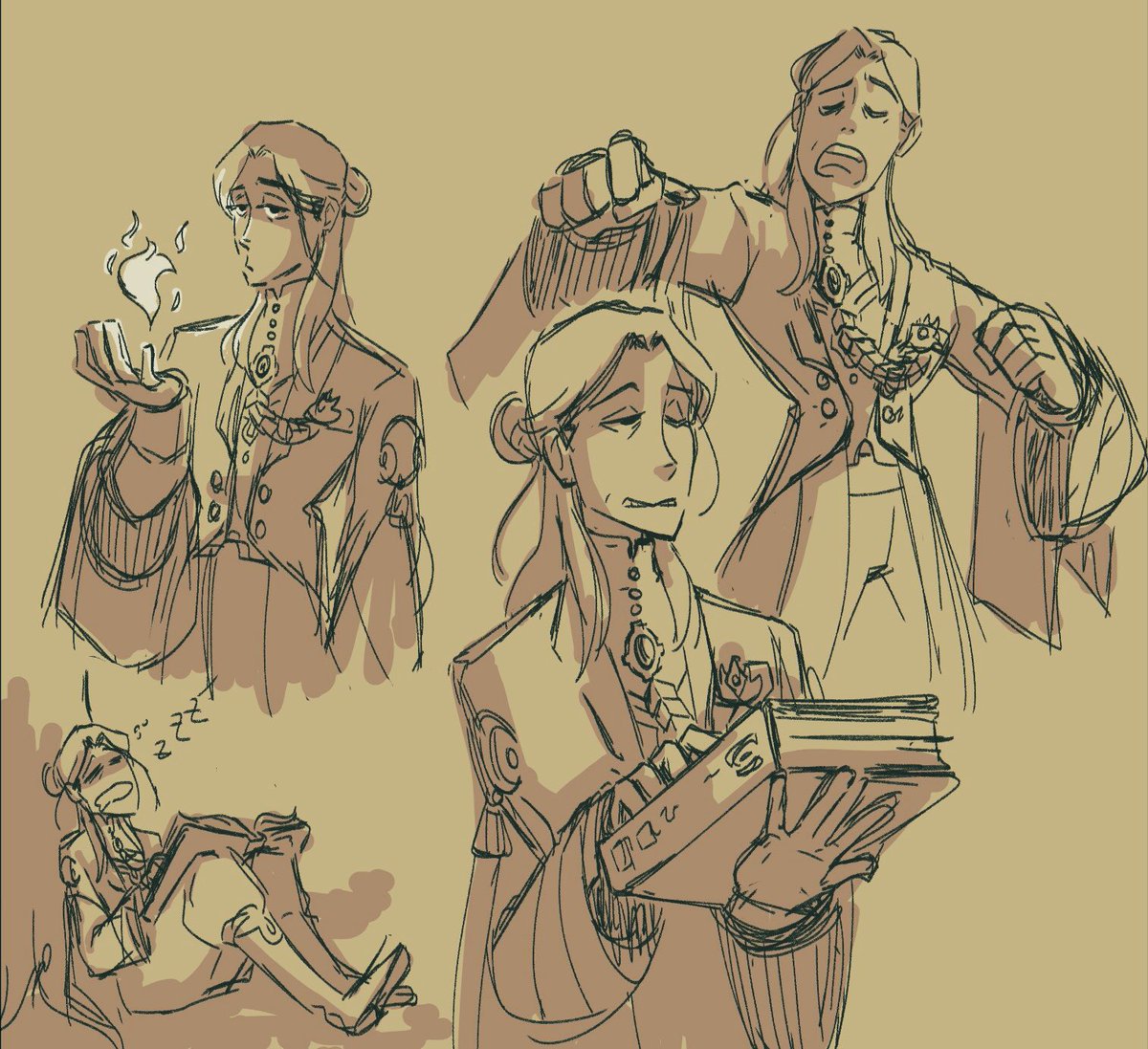 Dunno if I’m in the minority on this but I low-key kinda wished Caspar stayed teeny smol. And some additional sketches of some good boys because I guess my brain’s still stuck on those two atm. #fanart #FE3H #Caspar #Linhardt #Byleth #RKGK #tryingtomprovingon #drawingsleeves