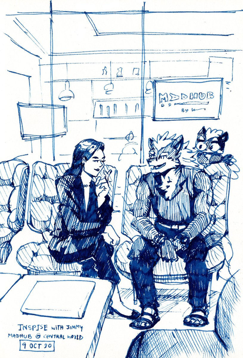 【Ink challenge】 Urban Sketch Day 9 : Inspire talk Location : Madspace by KBank , Central world , BKK I've a chance to talk with CEO CL. I got a lot of fun and inspire from her. #day9 #ink #sketch #urbansketch #ceo #talk #urbantober #inkart #inktober2020 #inkchallenge